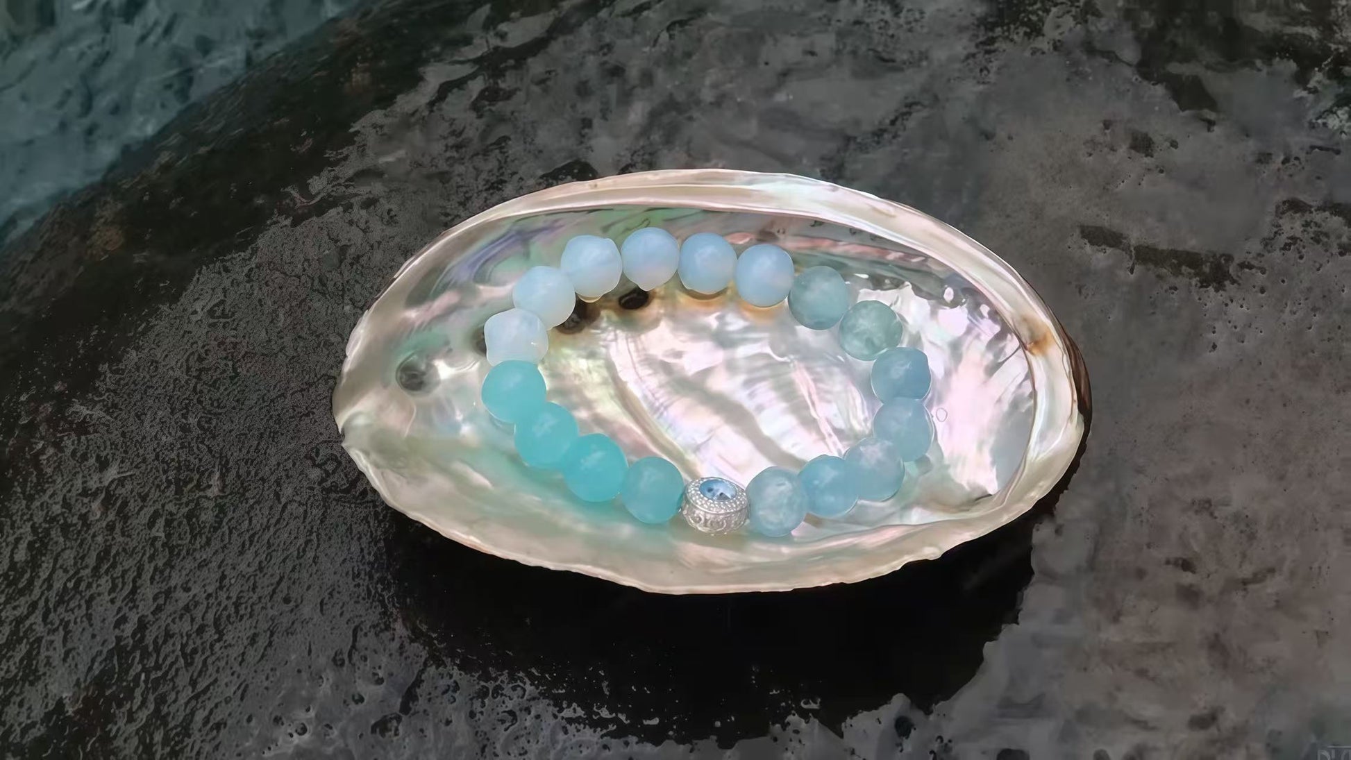This bracelet features the calming and intuitive trio of Aquamarine, Amazonite, and Opal—crystals known for enhancing clear communication, emotional balance, and spiritual alignment. When worn consistently, it helps you stay connected to your inner knowing, speak your truth, and trust the guidance rising from within.